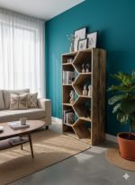 Distinctive Design: The staggered, angular inner shelving acts as a functional sculpture, perfect for displaying books, ceramics, or curated greenery.