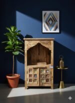 Elevate your spiritual space with this beautifully handcrafted Home Temple, carved from premium, sustainably sourced Mango Wood. Featuring a classic arched sanctum and intricate tile-work detailing on the lower cabinet doors, this mandir blends traditional Indian aesthetics with modern functional design.