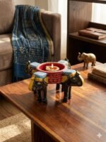 Handcrafted Quad-Elephant Diya Holder & Centerpiece