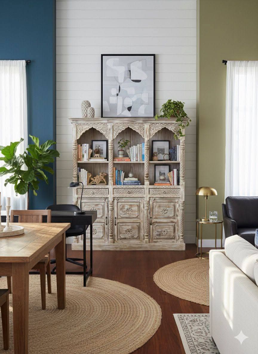 Bring timeless charm to your home with this beautifully handcrafted bookshelf, designed with intricate traditional carvings and a rustic distressed finish. Made from premium solid mango wood, this elegant piece combines style and function—perfect for displaying books, collectibles, or décor items. The rich wooden tones and detailed craftsmanship make it a stunning centerpiece for any living room, study, or office.
