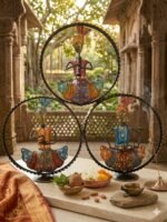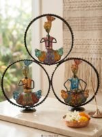 Add a touch of vibrant culture and rhythmic elegance to your home with this stunning Handcrafted Metal Art Set. This three-tier masterpiece features traditional folk musicians, each intricately hand-painted and framed within a sleek, circular metallic silhouette. It is the perfect blend of rustic charm and contemporary design.