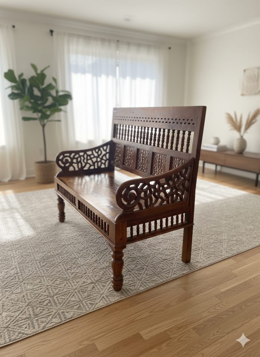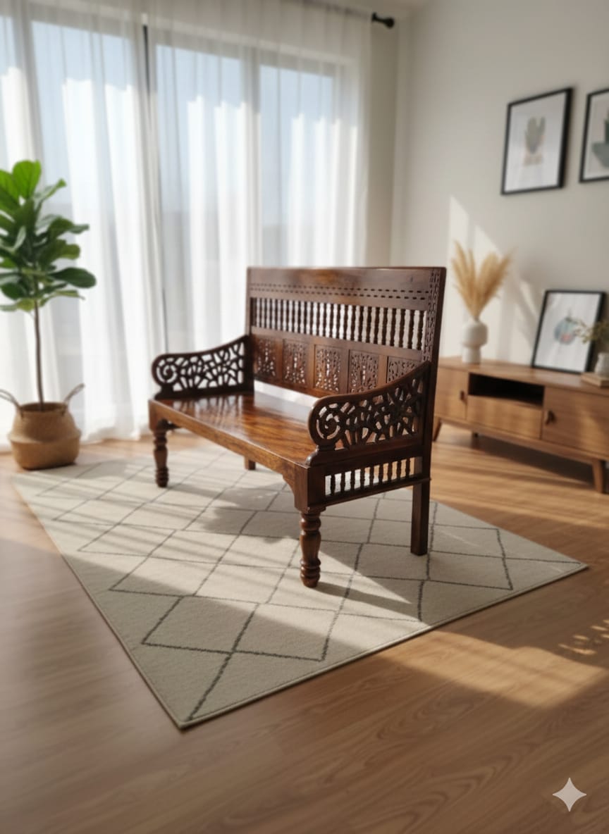 Royal Sheesham Wood 2-Seater Sofa Bench