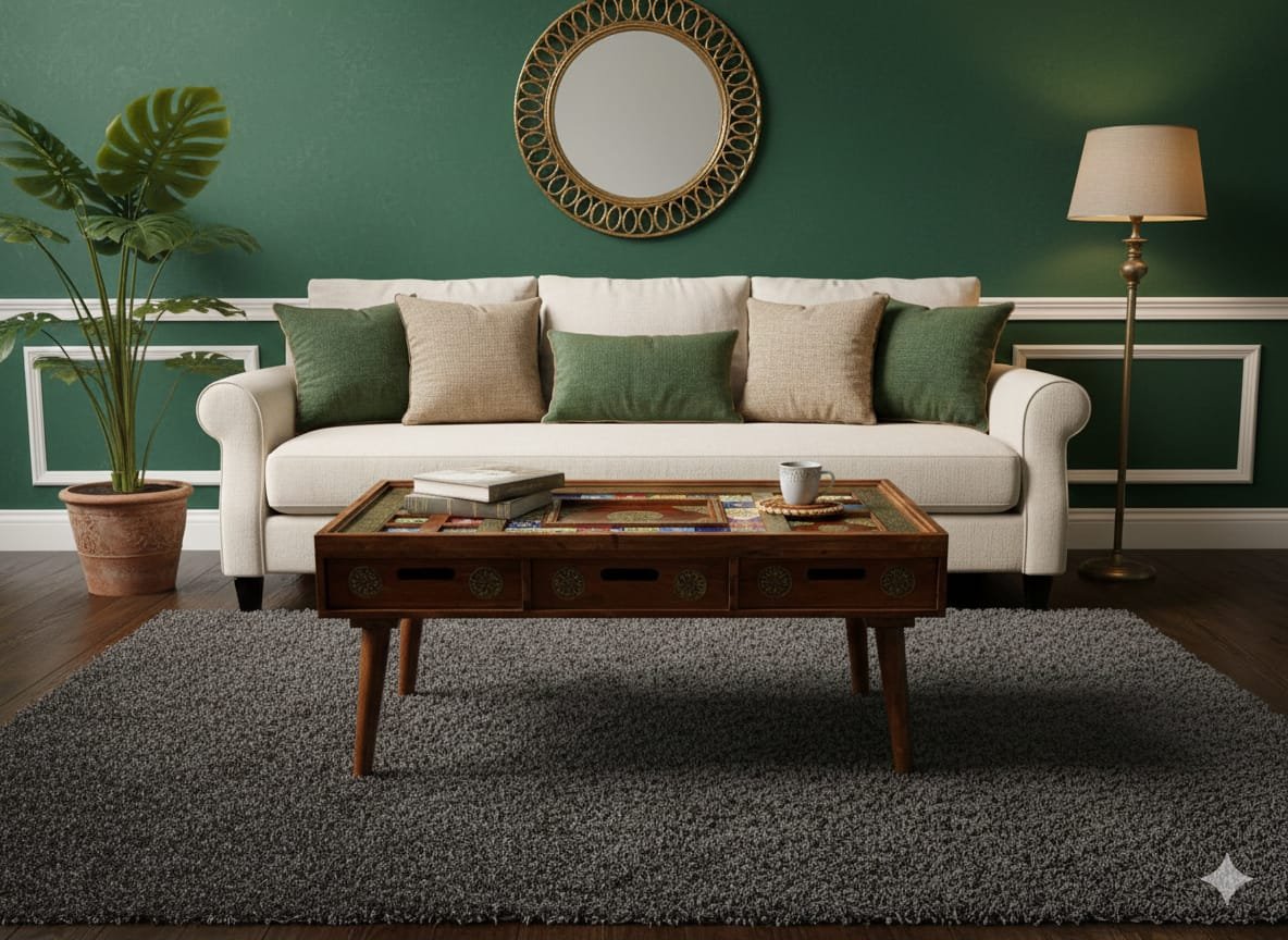 Versatile Statement: A perfect anchor for traditional, transitional, or eclectic “Global Chic” interiors.